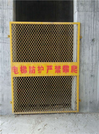 3、電梯井口的防護欄桿和門柵應以黃黑相間的條紋標明,并依照《修建施工高處工作安全技能規范》有關標準進行制造。