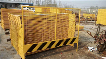 臨邊防護(hù)欄常用的是網(wǎng)片型防護(hù)欄,由邊框豎管與網(wǎng)片焊接而成,尺寸為1.2*2m,焊接完成后進(jìn)行噴塑處理。表面上色為紅白或者黑黃相間的顏色,并懸掛安全警示牌以起到警示作用。在臨邊護(hù)欄的下部需要設(shè)置15-20公分的擋腳板,擋腳板噴涂條形狀黑黃或紅白色條格。